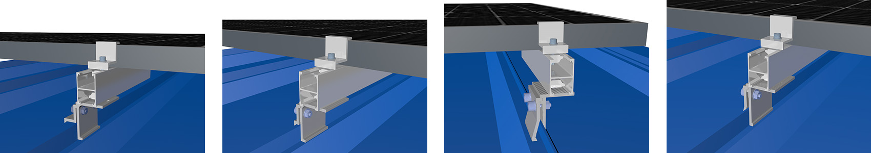 Sono disponibili oltre 15 diversi tipi di staffe di montaggio solo per i tipi di tetto trapezoidale in base alla soluzione di montaggio del tetto solare Supersolar .