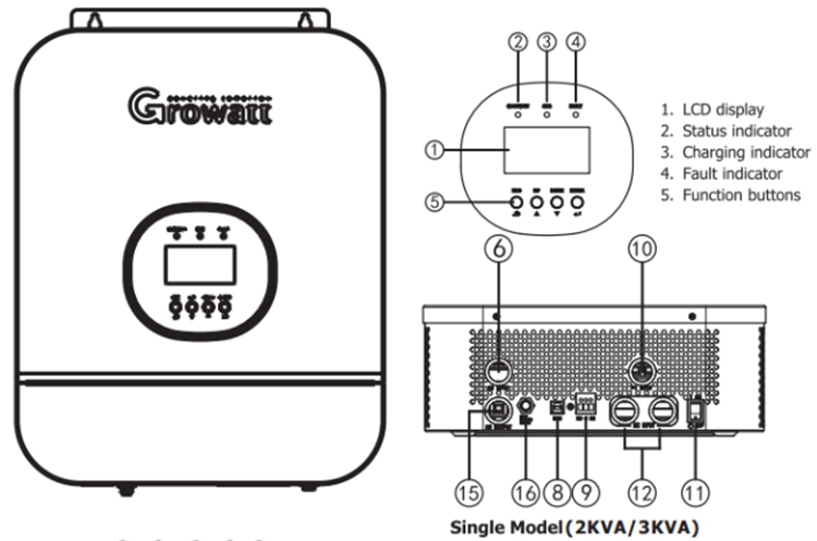 Si tratta di un inverter solare multifunzionale off-grid, integrato con un regolatore di carica solare MPPT, un inverter a onda sinusoidale pura ad alta frequenza e un modulo funzione UPS in una macchina, perfetto per l'alimentazione di backup off-grid e le applicazioni di autoconsumo.
