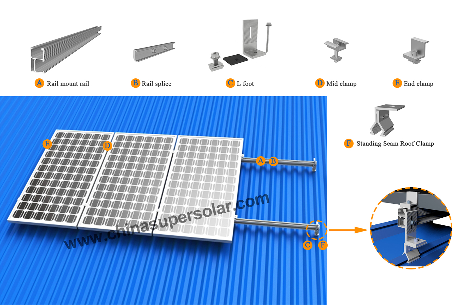 Super Solar offre anche diversi supporti solari per tetto in metallo aggraffato, da utilizzare su diversi progetti solari aggraffati. Se non sei sicuro del tipo di morsetto per tetto aggraffato di cui hai bisogno, puoi condividerci la foto con la misurazione, quindi il nostro ingegnere controllerà per te.
